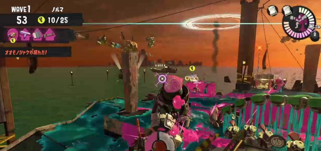 浮島を駆ける中、コウモリの放つ弾が視界を掠める。その弾は空中に数秒浮遊し、まるで闇の意志を持つかのように静止する。そして、上空に舞い上がり、インクの雨を降らせる。その一連の動きは、まるで禁断の儀式だ。何気なく観察していると、驚くべき事実に気づいた。雨が降る直前、弾は空中で神秘的なサークルを描く。まるで漫画やアニメで描かれる魔法陣の如く、光の軌跡が戦場に浮かぶ。この発見は、私の魂に響く。