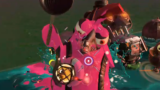 こういう誤爆は、結構Waveの終盤に多くある。なぜなら、金イクラの納品でコンテナ近くにみんな集まっちまうからだ!鮭殺隊メンバー集合状態で、ターゲットの攻撃が密集地に落ちやすい。緑汁の雨や爆発が一気に何人かを沈め、シフトが大ピンチ!「みんな、散開だ!心を一つに!」と叫びたくなるぜ。密集は敵の思う壺だ!