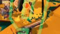 テッパン、飛んだりするんだよね。まあ、乗用車だと飛ばんでしょ普通は。 インクの海に、そんな常識は通用しない。シャケの群れがざわめく中、テッパンは突然、 車輪を離陸させ、短い弧を描く。まあ、飛ぶっていっても、そんな長々と飛ぶわけじゃないんだけど。 すぐ着地するんだけどね。しかも、そんなすごい飛翔でもないしね、まあ、なんとも微妙な感じでした。 あの瞬間、テッパンの影が空を掠め、チームメイトの驚きの叫びがハーモニーを乱す。 微妙な跳躍は、サーモンランのユーモラスな詩篇。侵略の波を、ほんの一瞬、忘れさせる。